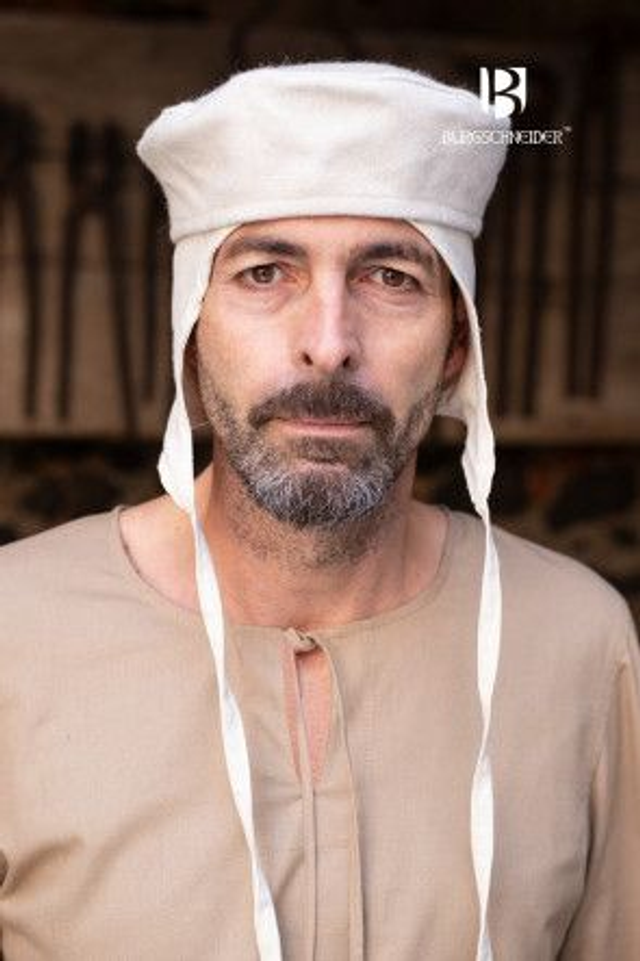Our Wool Cap Hugo is a simple medieval model which can complement any costume. Depending on your mood and the weather, you could combine it with our Coif Bertram or wear it directly on your head. The cap is round, flat at the top and made of robust wool felt.