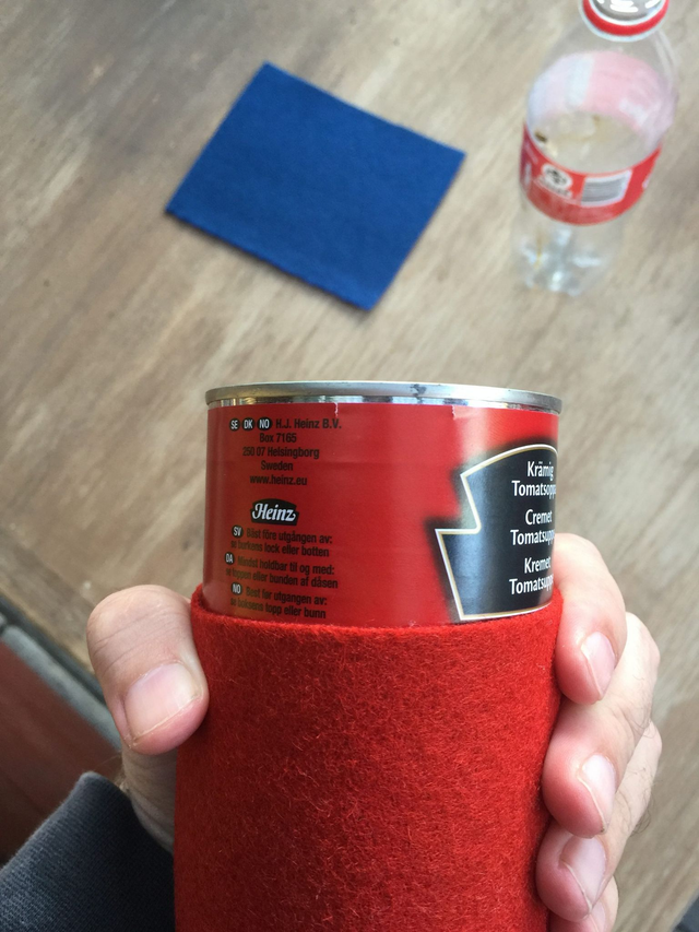Så har vedhæftet 3 billeder. Et af HESK, et med et stykke stof op ad en tomatsuppe og en coca cola